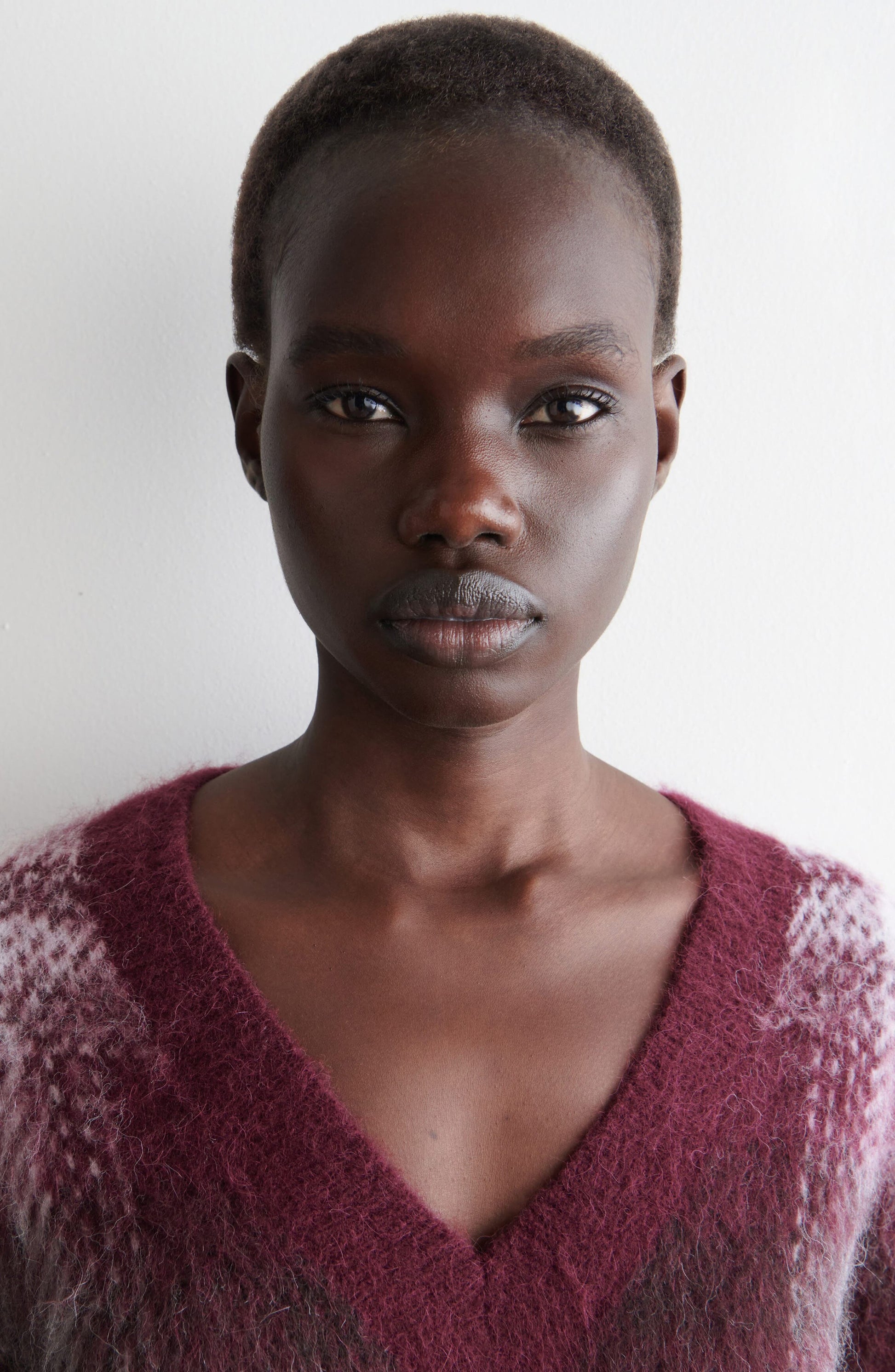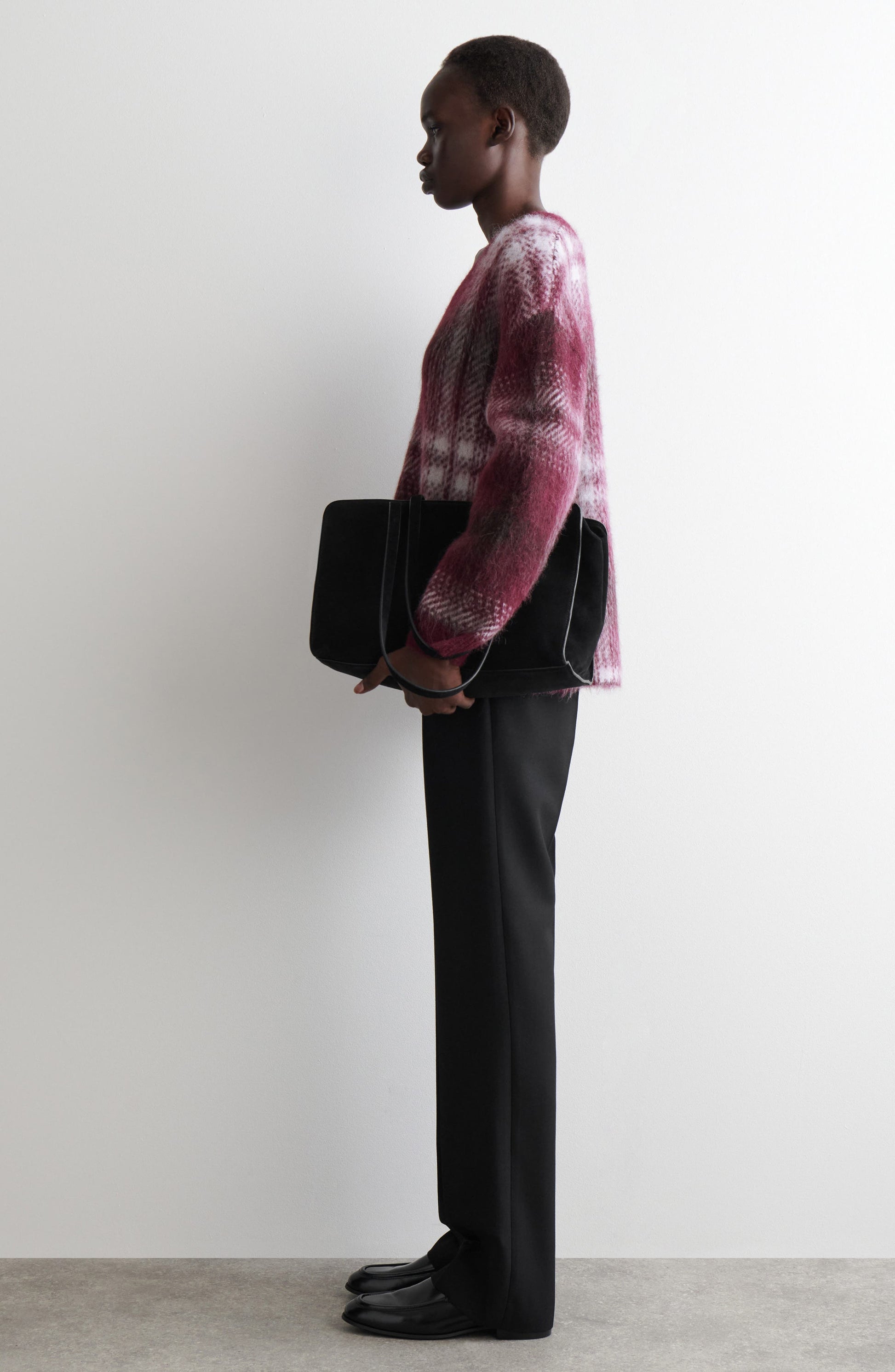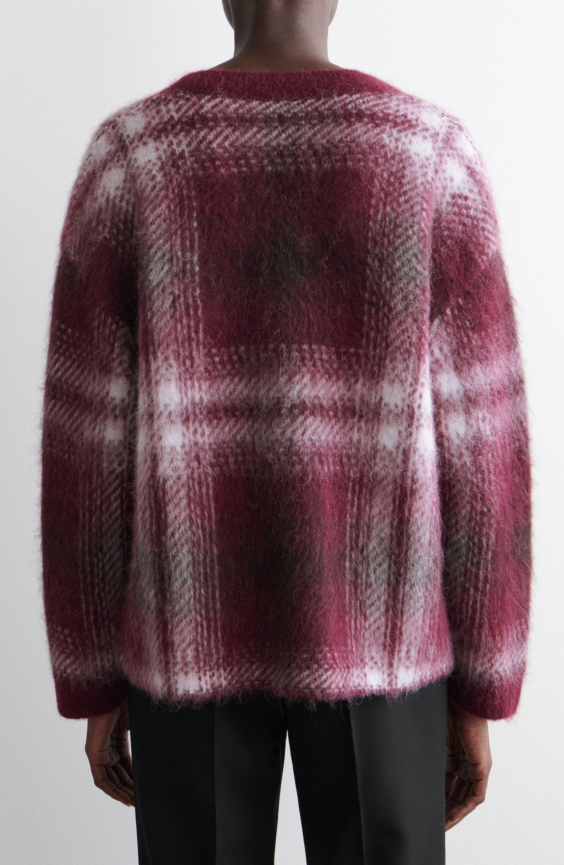 A statement-scale check patterns this oversized V-neck sweater knit from a brushed blend of alpaca and wool yarns, with recycled nylon adding structure and durability.