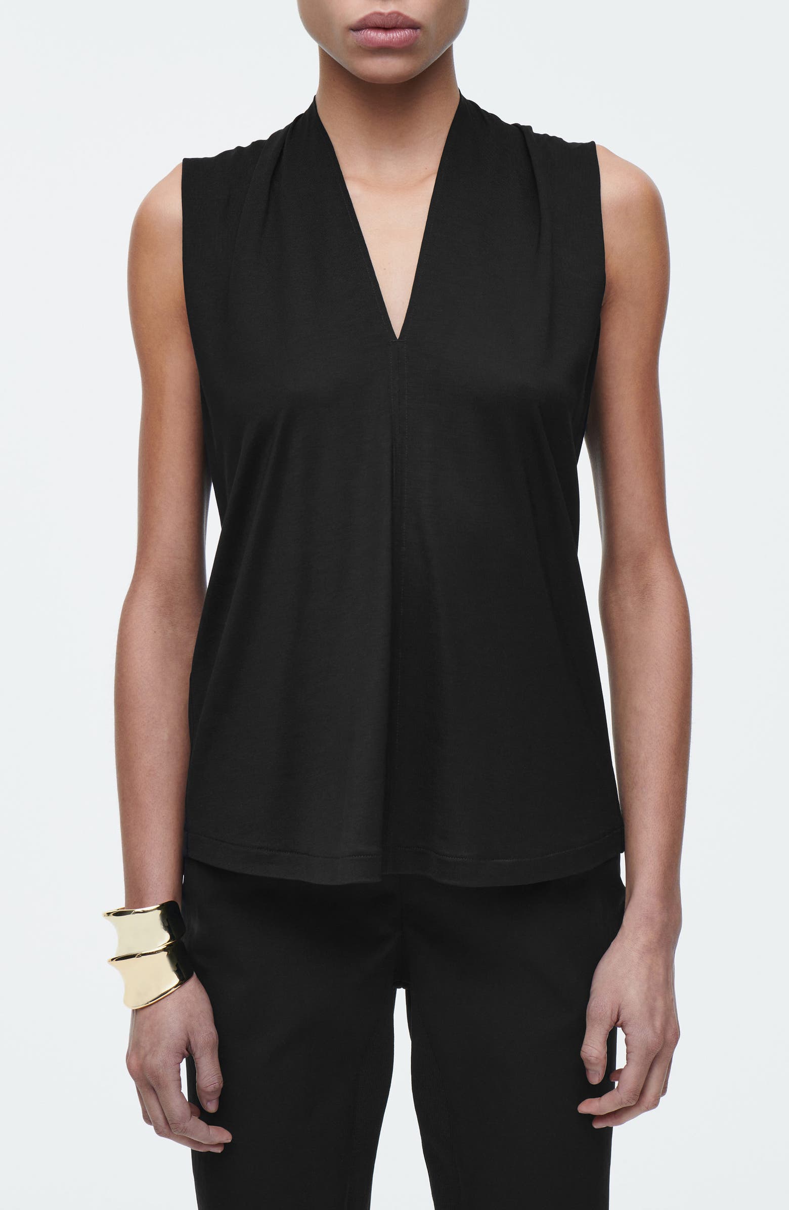 Draped V-Neck Sleeveless Top