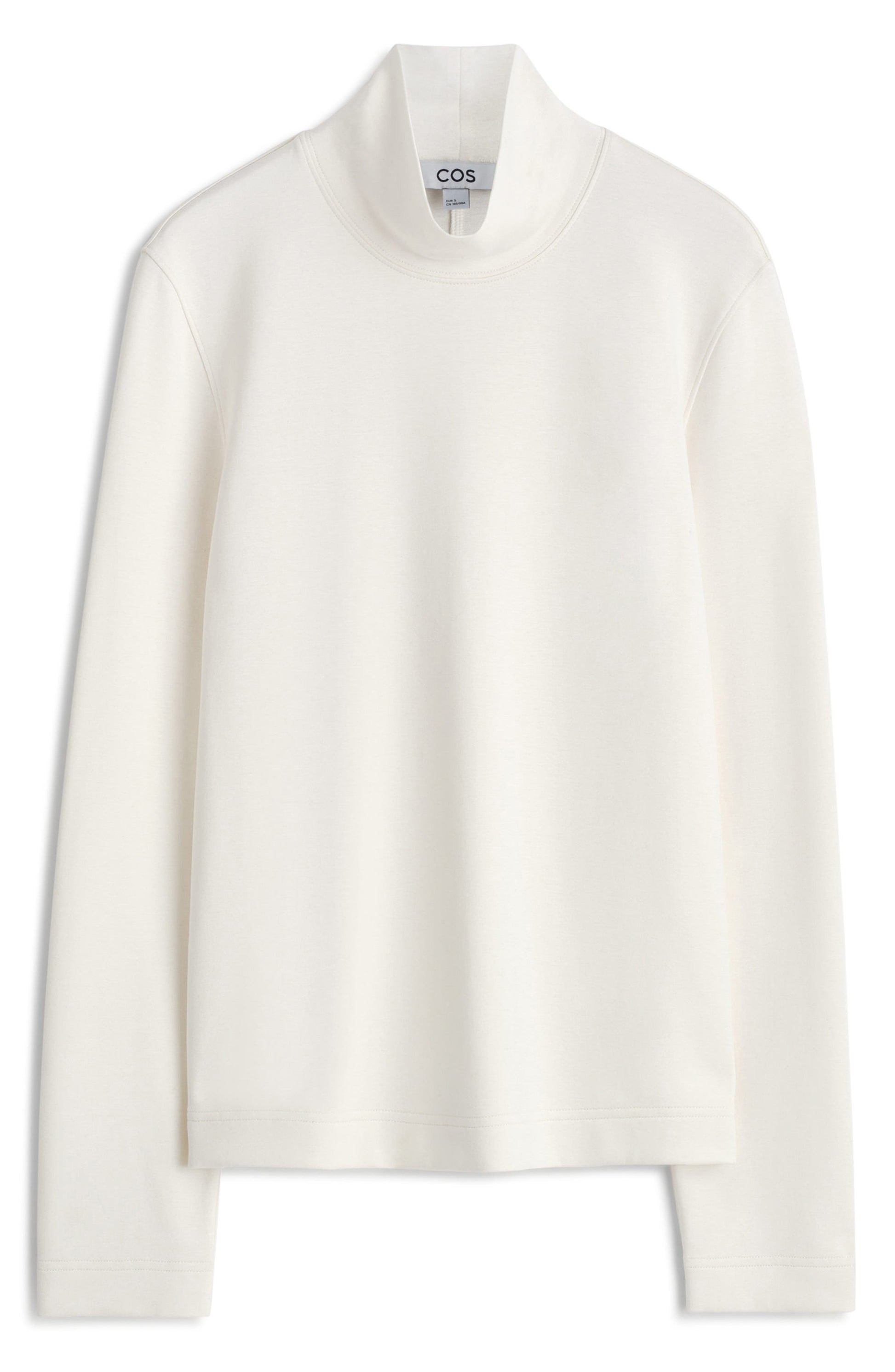 Refined and sleek, this boxy top is made from a supersoft jersey with a mock neck and long sleeves to complete the polished look.