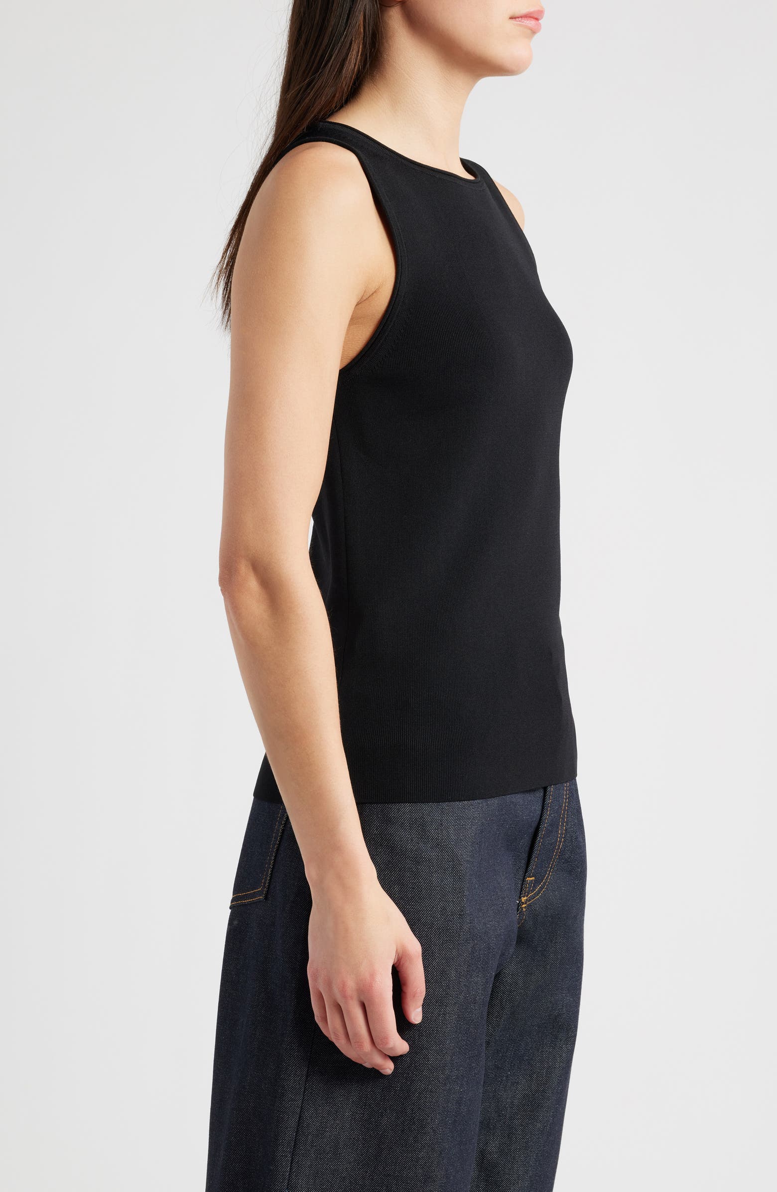 This refined tank is crafted from a smooth and stretchy knit and finished with sleek tubular edging for a look you won't want to cover up.