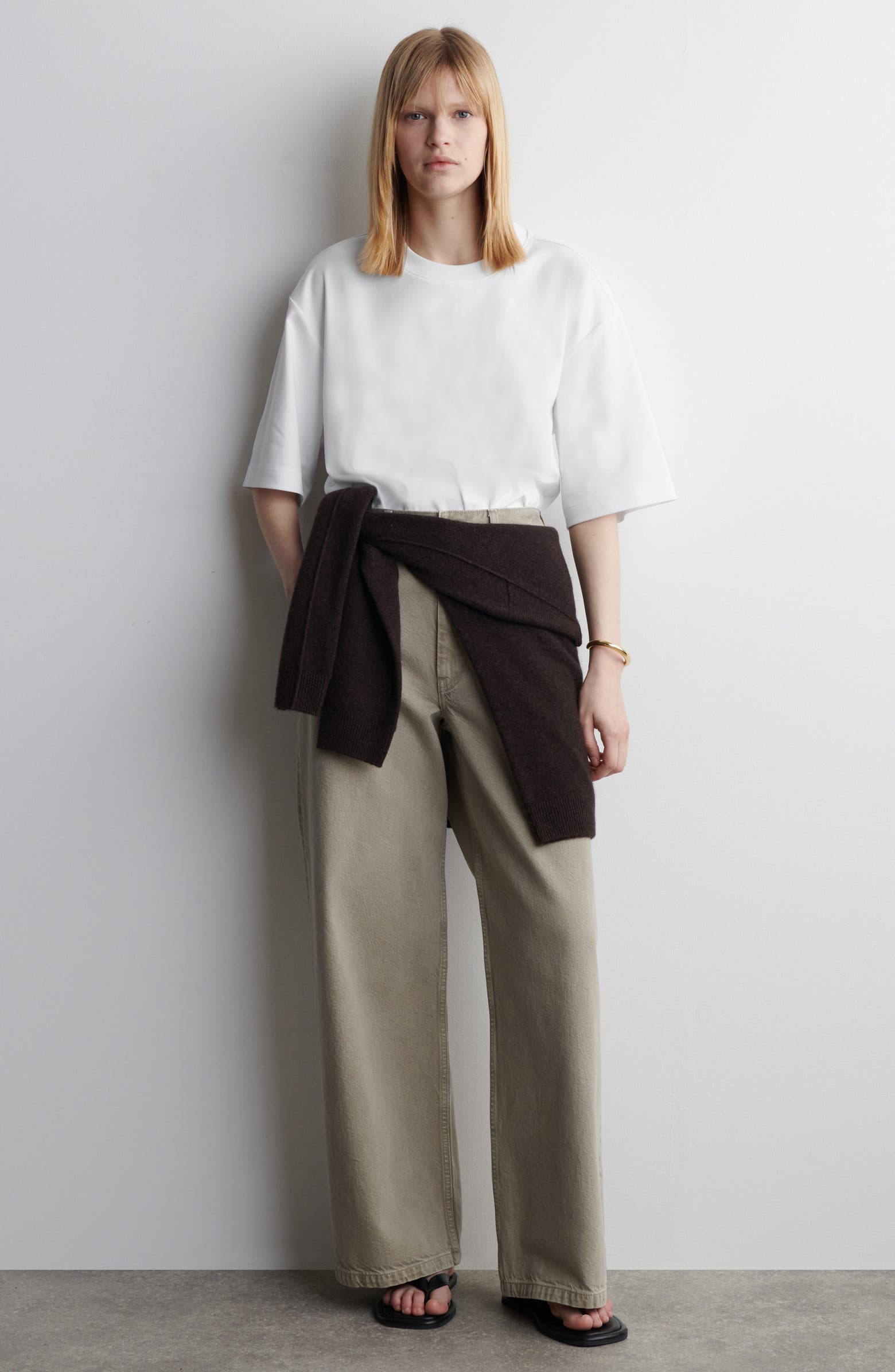Slouchy but not sloppy, this T-shirt is made from soft organic-cotton jersey with elbow-length sleeves and a widened hem that adds to the relaxed drape.